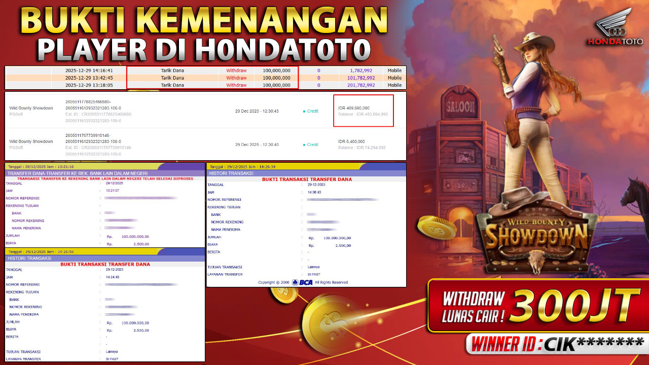 Bandar togel HONDATOTO merupakan bandar togel dan slot online yang membayar semua kemenangan member hingga lunas. Setiap pembayaran pada situs kami dilakukan dengan cara transfer ke rekening tujuan yang sudah di daftarkan pada situs togel online kami, Pembayaran hanya dapat di proses jika rekening yang di daftarkan telah valid dan dapat di transfer. Semua kemenangan member yang mendapatkan hadiah jackpot terbesar akan kami posting agar semua pemain dapat melihat bandar situs terpercaya HONDATOTO ini membayar semua kemenangan member hingga lunas. Setiap postingan yang kami posting akan kami lakukan sensor pada nomor rekening 4 digit dan nama rekening untuk menjaga privasi dan kerahasiaan member. Postingan Jackpot yang kami posting agar member atau pemain yang belum pernah bermain bisa melihat bandar togel Bukan Kaleng Kaleng Seperti HONDATOTO ini, Semua postingan jackpot yang kami posting dapat di lihat data keasliannya melalui nomor reff yang di tunjukan pada bank atau mbanking saat kita melakukan transfer.